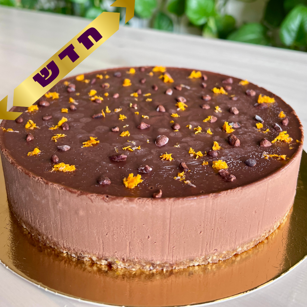 עוגה מדהימה לאוהבי השילוב של שוקולד ותפוז קראסט תמרים, שקדים וגרידת תפוז, קרם שוקולד-תפוז עשיר במיוחד גרניש קקאו ניבס וגרידת תפוז