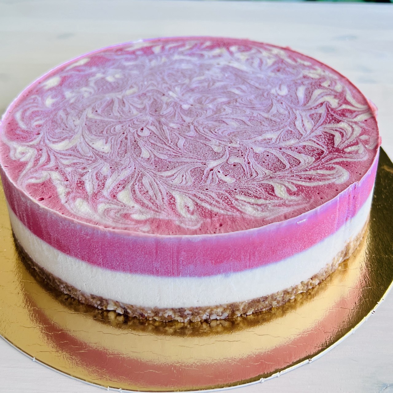 מוס דובדבנים קטיפתי ומוס וניל קרמי משולבים אחד בשני באיזון טעמים מיוחד